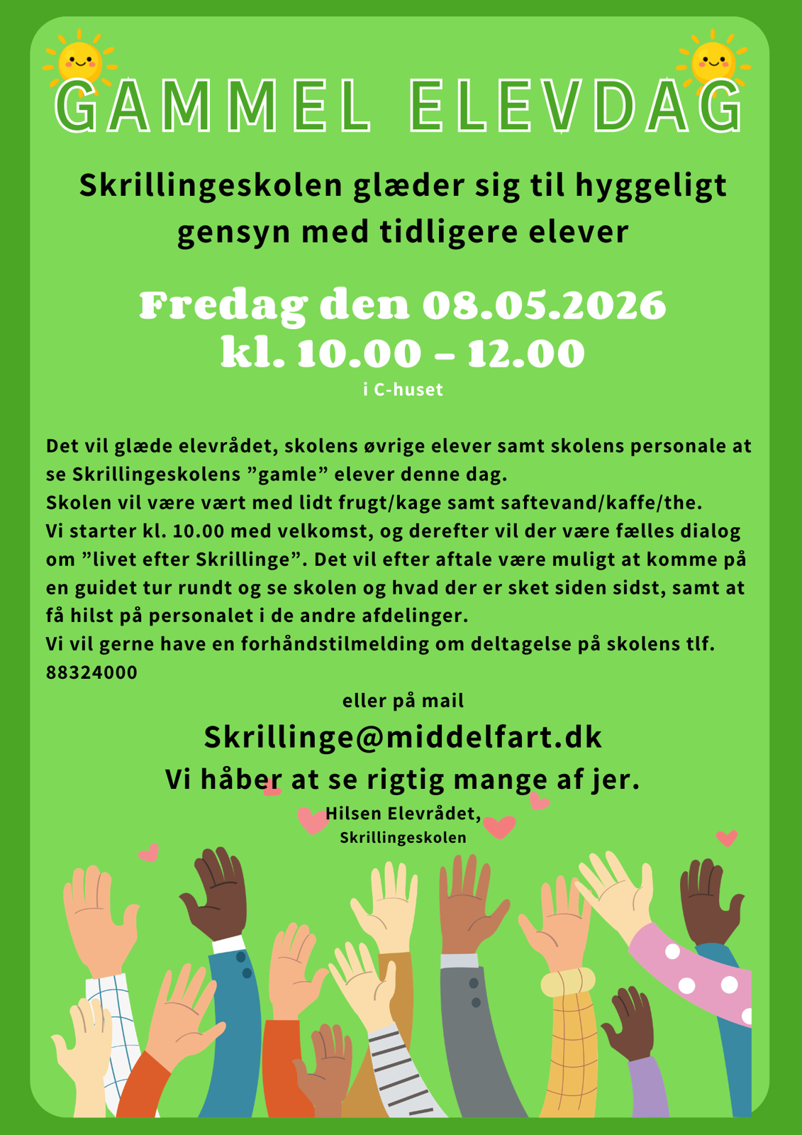Gl. elevdag afholdes næste gang 8. maj 2026 kl. 10.00-12.00.